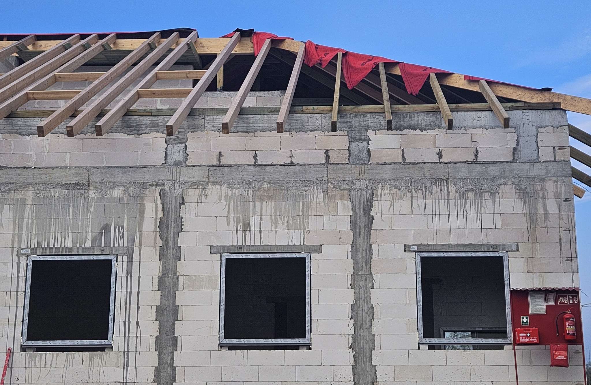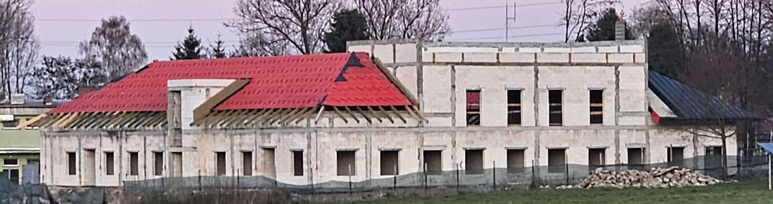 Prace przy nowym gminnym budynku wielofunkcyjnym postępują zgodnie z planem. Obecnie wykonawca montuje instalację elektryczną, osadza okna, a także prowadzi roboty związane z pokryciem dachu płytami ognioodpornymi i blachodachówką.