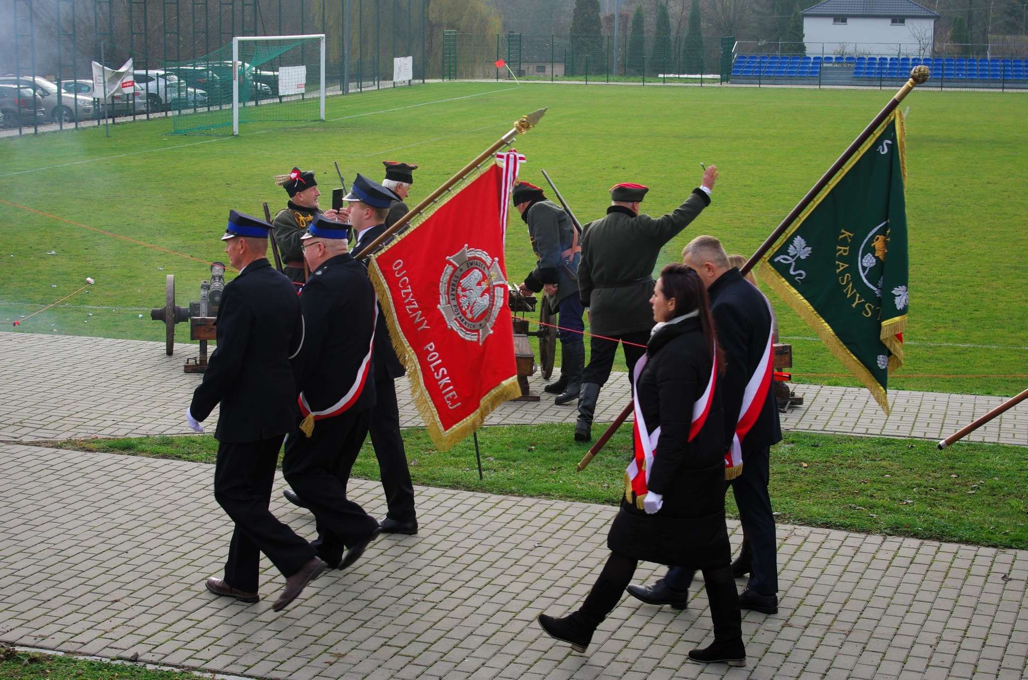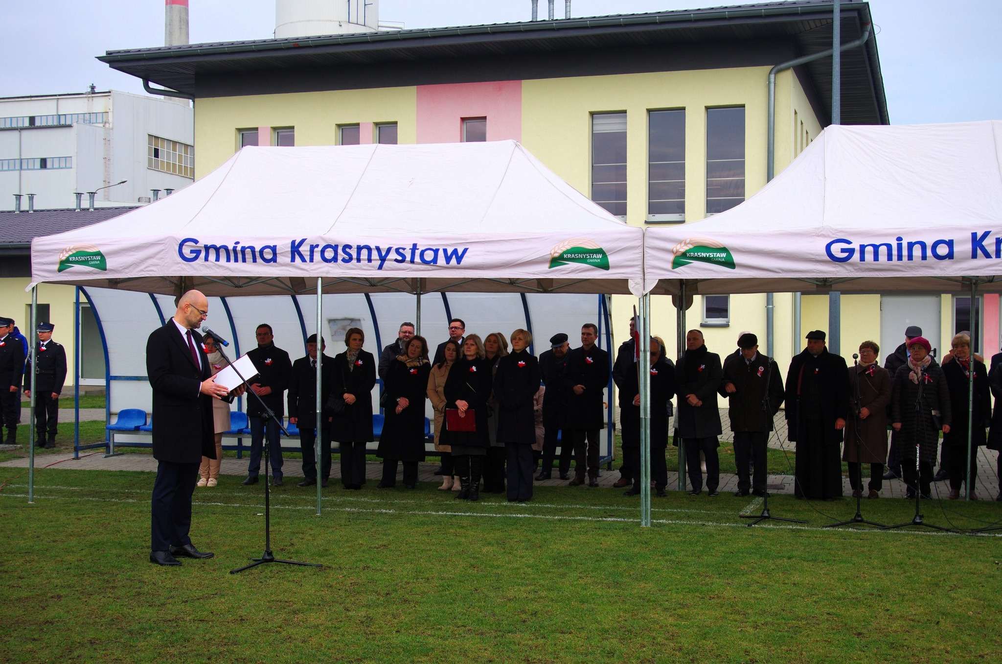 Uroczystości rozpoczęły się na stadionie sportowym w Siennicy Nadolnej. Podczas ceremonii, prowadzonej przez Leszka Waręckiego, komendanta Miejsko-Gminnego Zarządu OSP, wciągnięto flagę na maszt, odśpiewano Hymn Państwowy oraz oddano salwę armatnią w wykonaniu Regimentu Mikołaja Nieczaja. Głos zabrali: Wojciech Kowalczyk, Wójt Gminy Krasnystaw; Janusz Szpak, Starosta Krasnostawski;