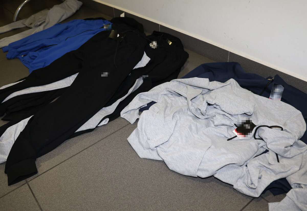 W trakcie interwencji policjanci zabezpieczyli łącznie 230 sztuk odzieży. Wśród nich znajdowały się m.in. koszulki, bluzy, spodnie oraz skarpetki oznaczone zastrzeżonymi znakami towarowymi. Wszystkie produkty były przeznaczone do sprzedaży, mimo że naruszały prawa własności intelektualnej.