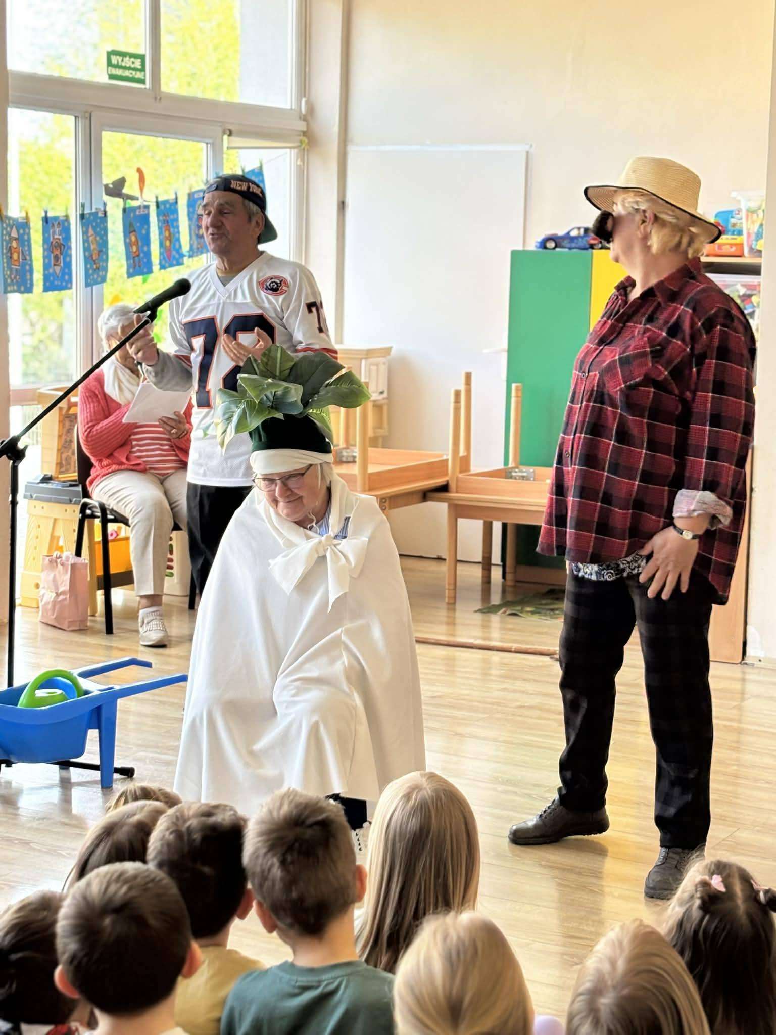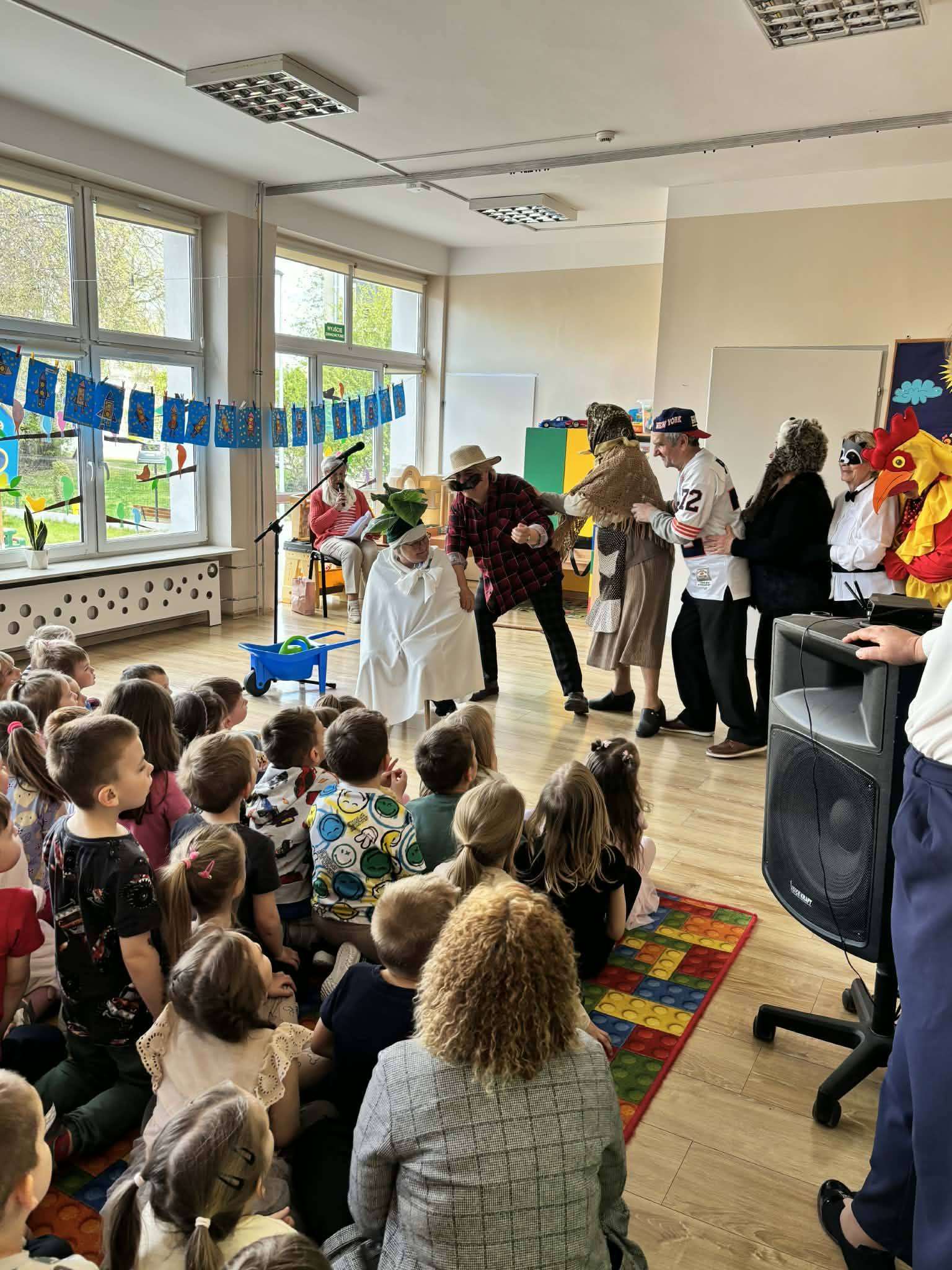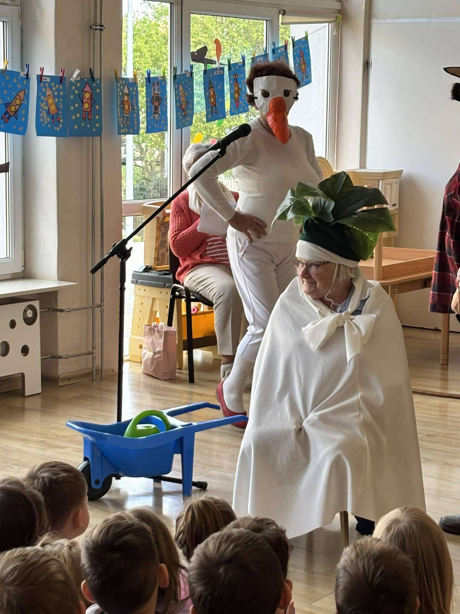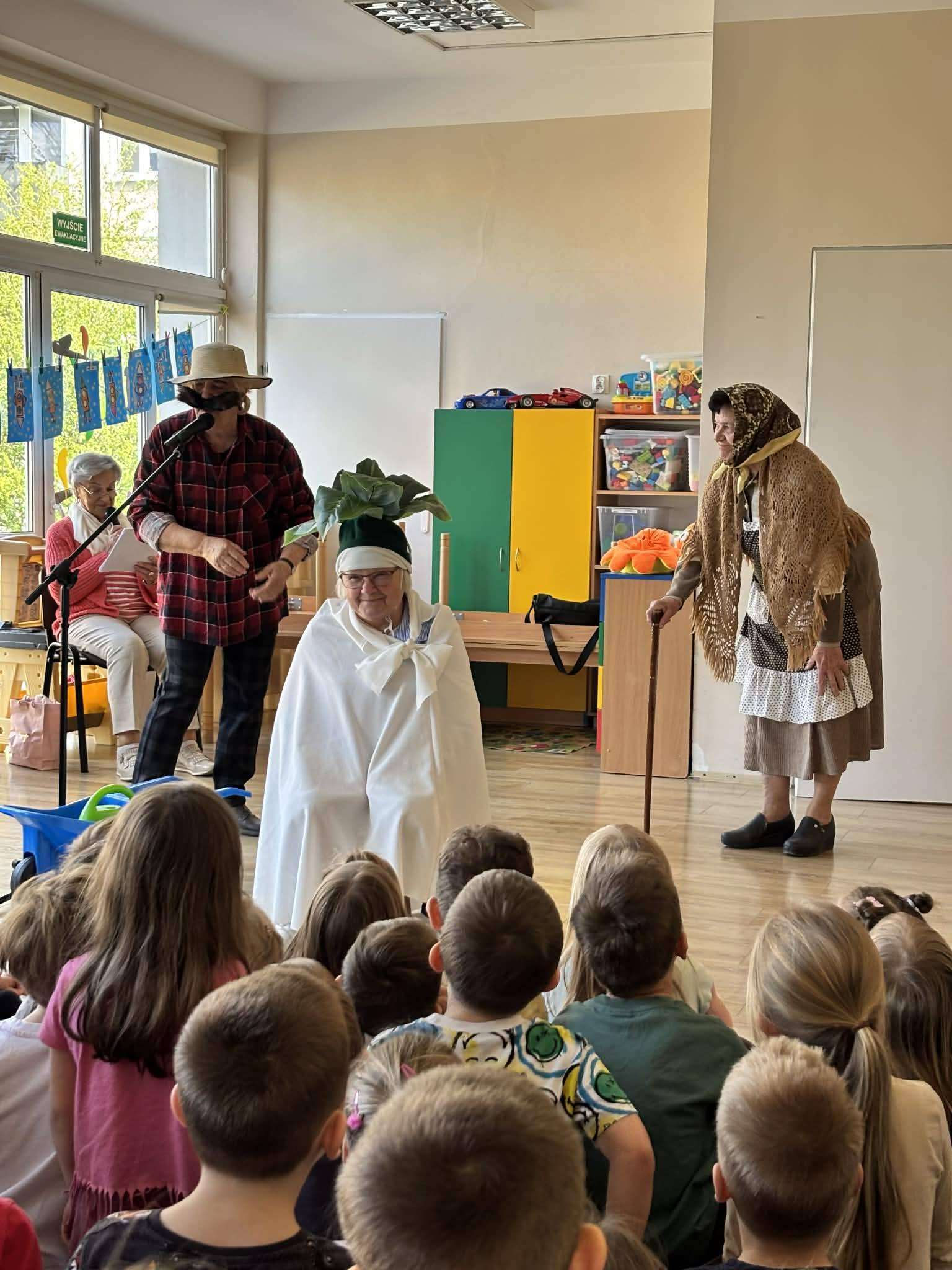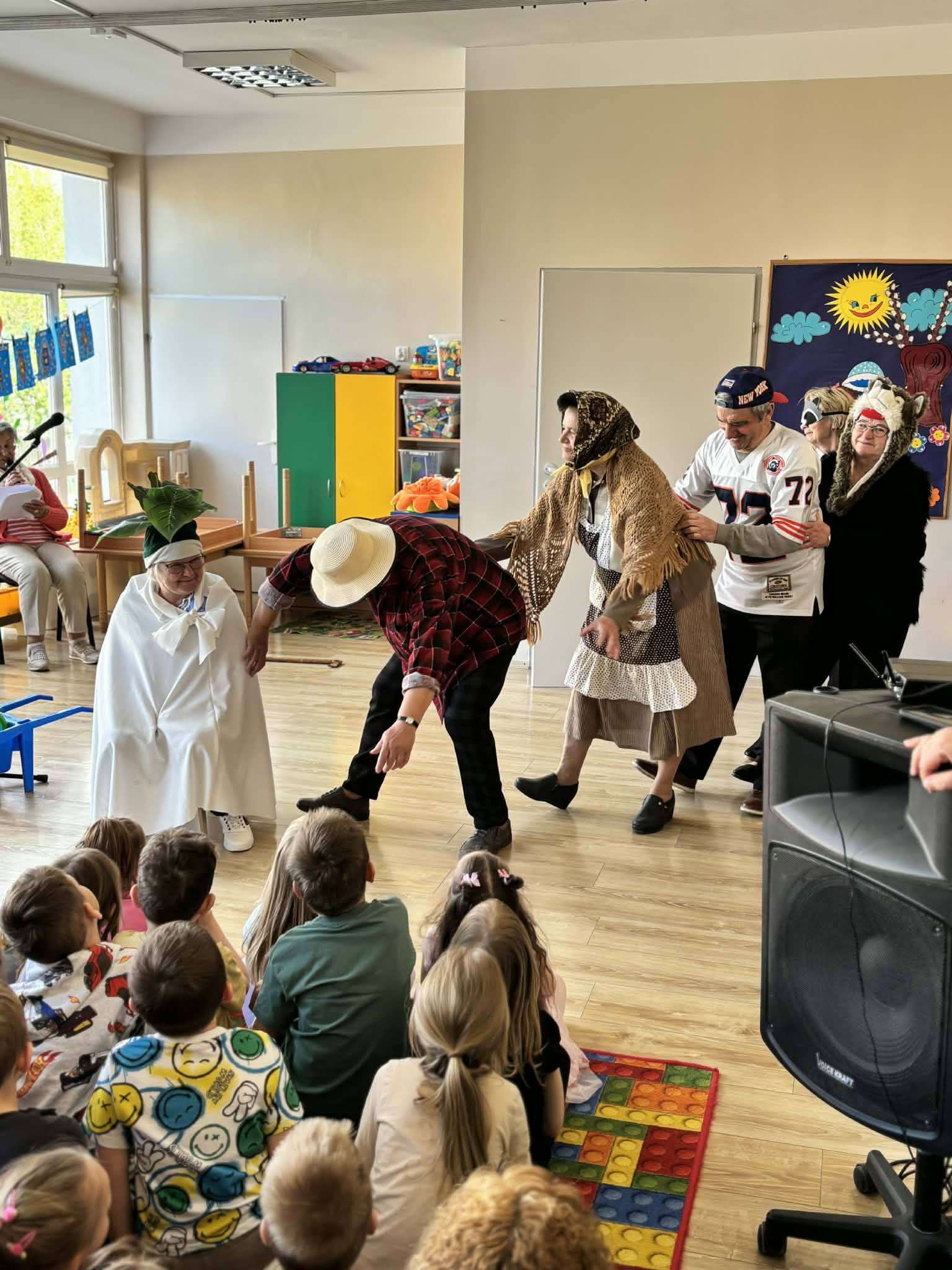 Podczas spotkania nie zabrakło uśmiechu i radosnej atmosfery. Seniorzy przygotowali dla najmłodszych inscenizację bajki „Rzepka”, która spotkała się z dużym zainteresowaniem i entuzjazmem dzieci. Wspólna aktywność sprzyjała integracji oraz budowaniu więzi między pokoleniami.