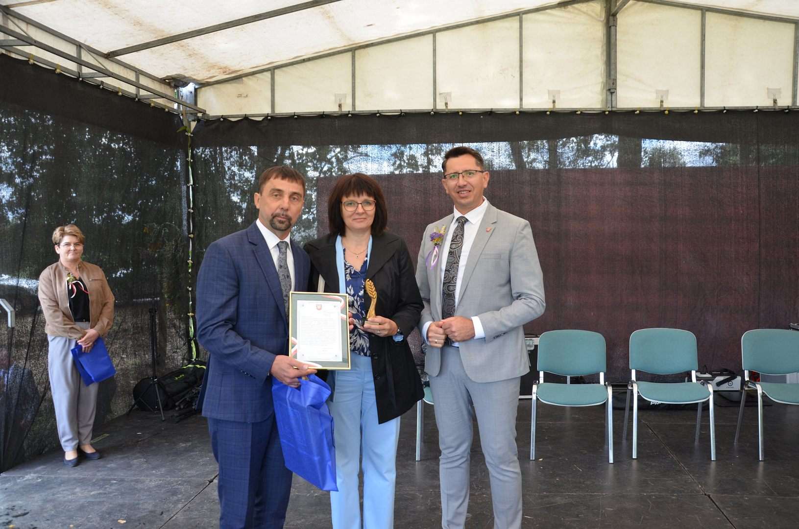 Nie zabrakło tradycyjnego poczęstunku chlebem dożynkowym, domowych wypieków przygotowanych przez Koła Gospodyń Wiejskich oraz regionalnej grochówki. Wyróżniono również Ewę i Andrzeja Wielosz z Łachowiec, którzy zdobyli I miejsce w etapie regionalnym XXII Ogólnokrajowego Konkursu „Bezpieczne Gospodarstwo Rolne”.