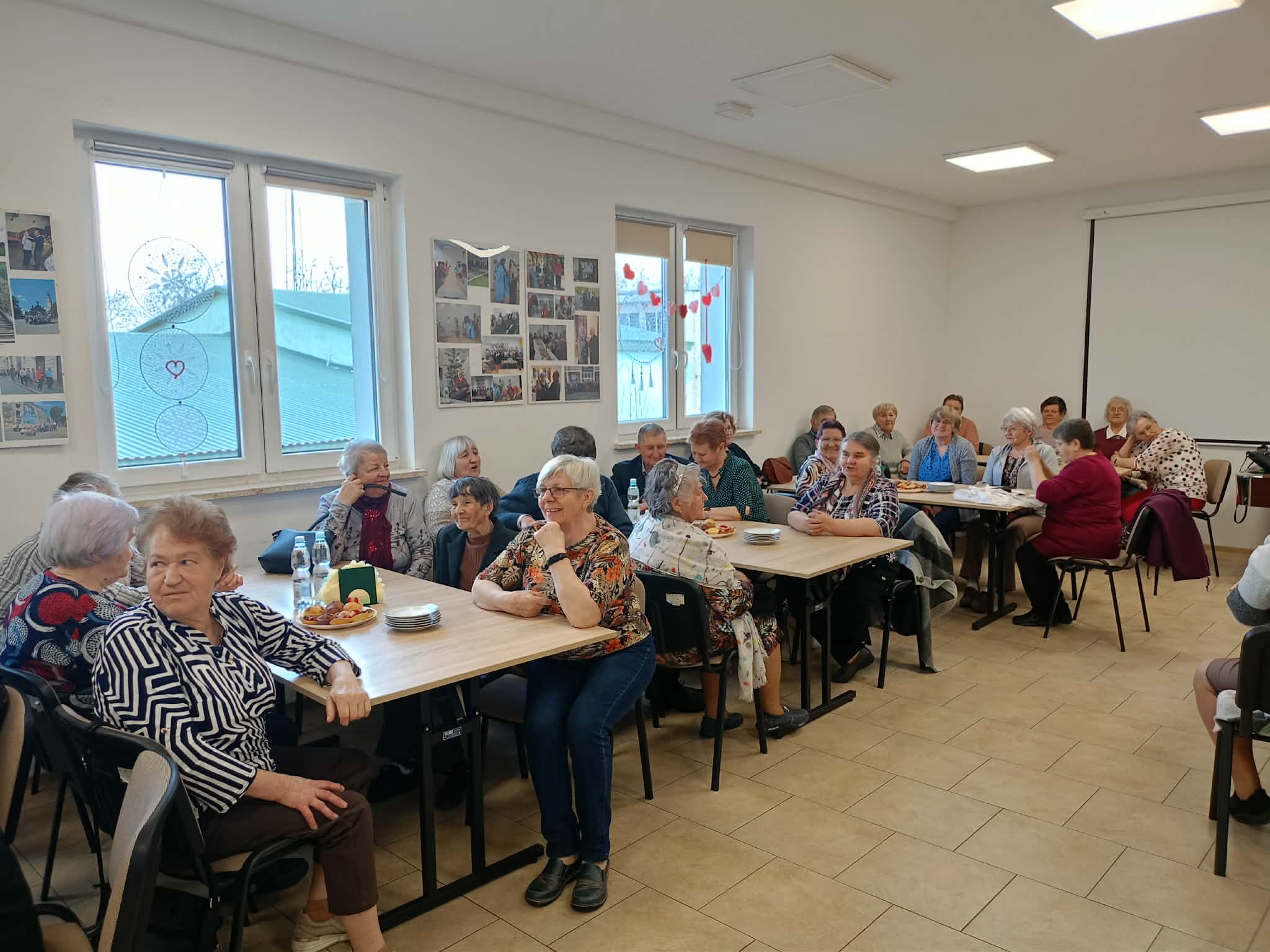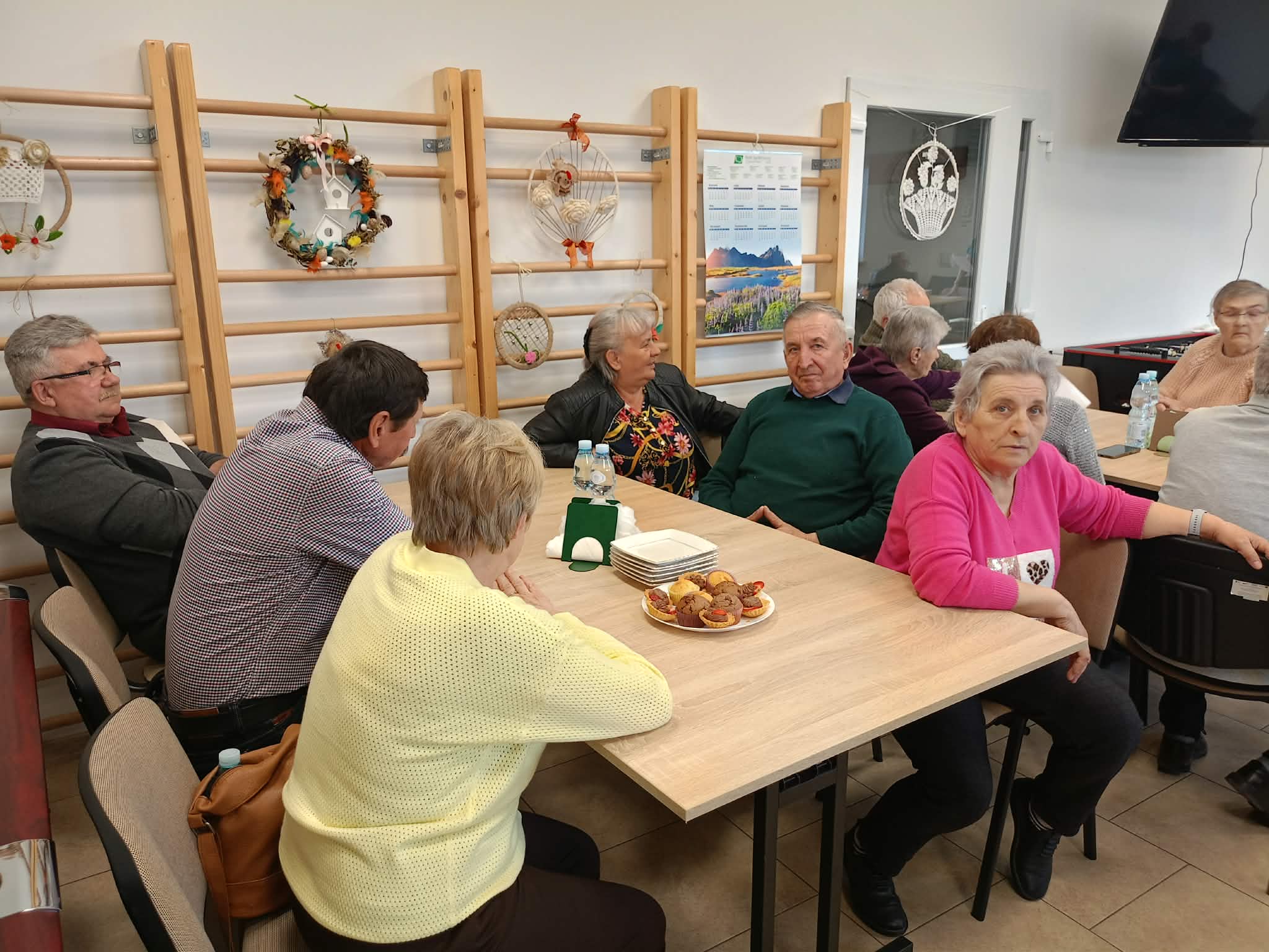 Po zakończeniu warsztatów przyszedł czas na degustację. Seniorzy zaprosili swoich znajomych z klubu i wspólnie zasiedli do stołu. Była to nie tylko okazja do spróbowania słodkości, ale też do rozmów i śmiechu.