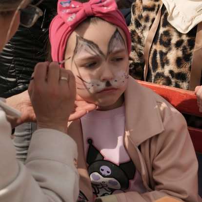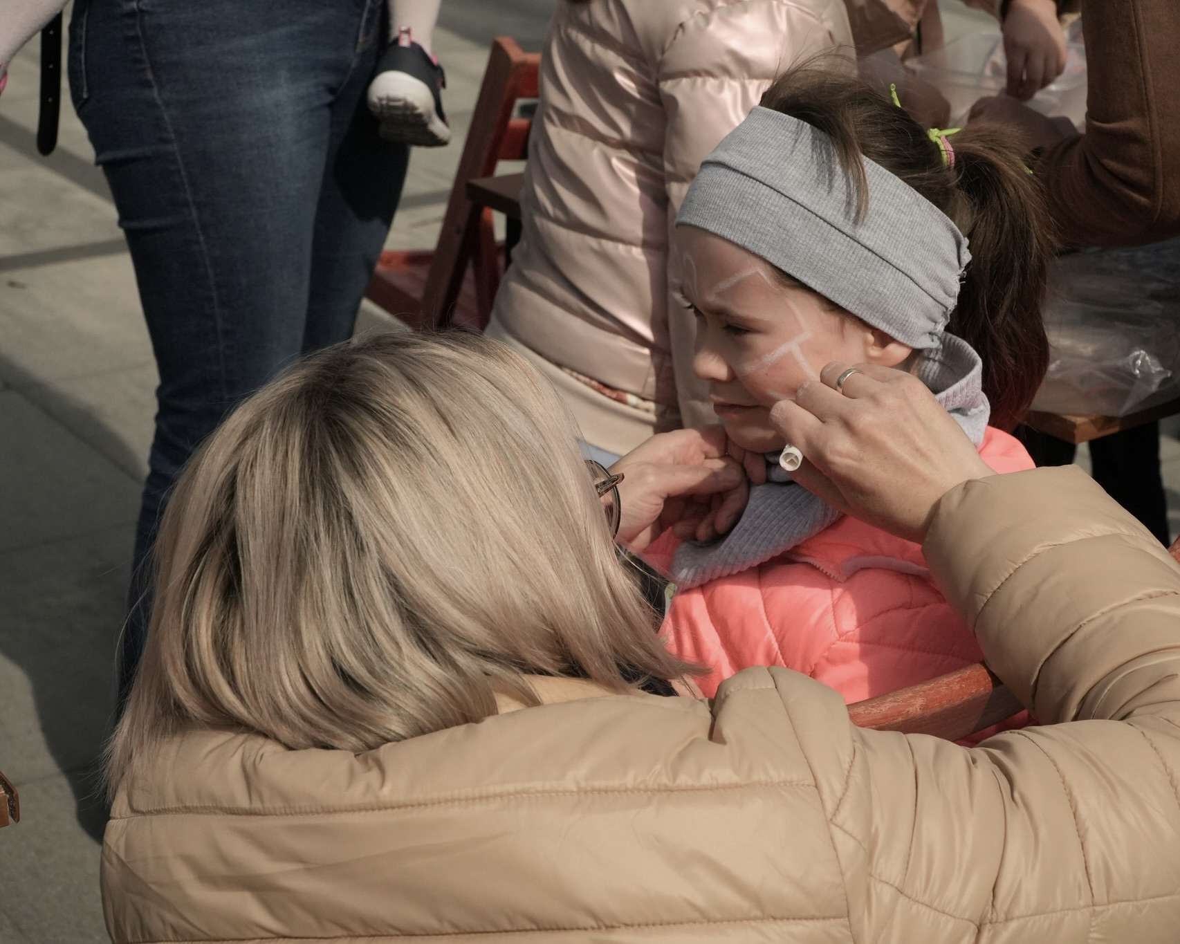 Dużym zainteresowaniem cieszyło się również malowanie twarzy. Dzieci chętnie zamieniały się w urocze króliczki, motylki i bajkowe postacie, co dodało wydarzeniu jeszcze więcej kolorów i magii.